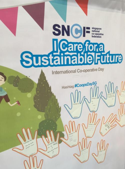 The Singapore National Cooperative Federation (SNCF) celebrated the Day with the public at AMK Mall through a roadshow that showcased contributions of local co-operatives to Singapore’s economic and social development. This was presented in the form of visual exhibits that illustrated Singapore’s co-operative milestones and highlighted prominent social needs which gave rise to different co-operatives over the past decades. In line with this year’s theme, SNCF invited participation from the public to show their support in working towards a sustainable future for Singapore by pledging their commitment for a sustainable future in the form of the handprints which are featured on the commitment wall (refer to attached photo). More information can be found at SNCF’s Facebook on https://www.facebook.com/sncf.singapore/.