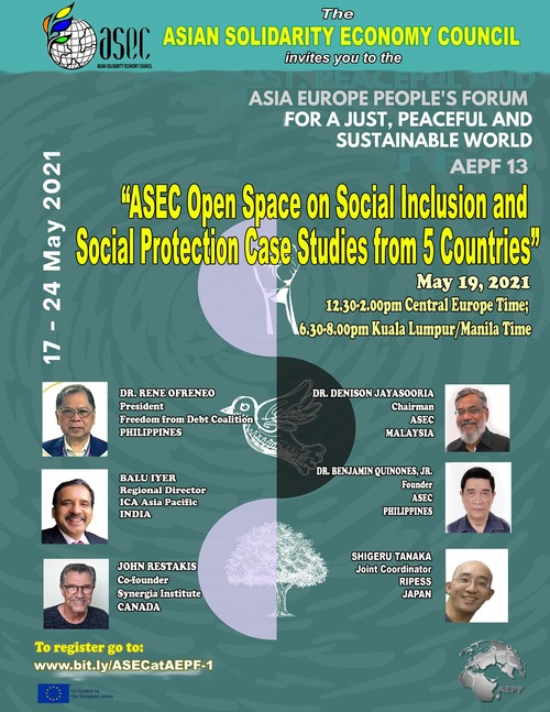 International Cooperative Alliance Asia and Pacific (ICA-AP) will join the Asian Solidarity Economy Council (ASEC) at the 13th biennial Asia Europe People’s Forum (AEPF 13) to be held from 17 to 24 May 2021 with the theme “Asia Europe People’s Forum for a Just, Peaceful and Sustainable World”.
