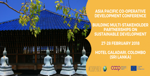 The Asia-Pacific Co-operative Development Conference will be organized on the theme Building Multi-Stakeholder Partnerships on Sustainable Development at Hotel Galadari, Colombo (Sri Lanka) from Feb 26-March 1 2018. It is being co-organized by the International Co-operative Alliance- Asia and Pacific (ICA-AP), ICA-EU Partnership on Co-operatives in Development: People Centered Businesses in Action (#coops4dev), and the Sri Lankan Co-operative movement led by the National Co-operative Council, Consumer Co-operative Federation, SANASA Federation, Kotikawatta Thrift & Credit Co-operative and National Institute of Co-operative Development.