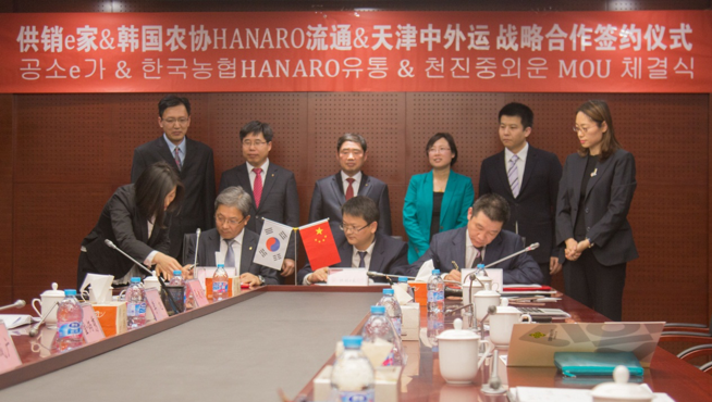 China E Co-op, a wholly-owned subsidiary of ACFSMC operating China’s leading agribusiness online platform (www.gxyj.com) and the Korean Nonghyup Hanaro Mart signed a Memorandum of Understanding (MoU) to enhance cooperation on cross-border trade and services. Sinotrans Tianjin, a subsidiary of Sinotrans Limited, joined the partnership as the sole logistics service provider.