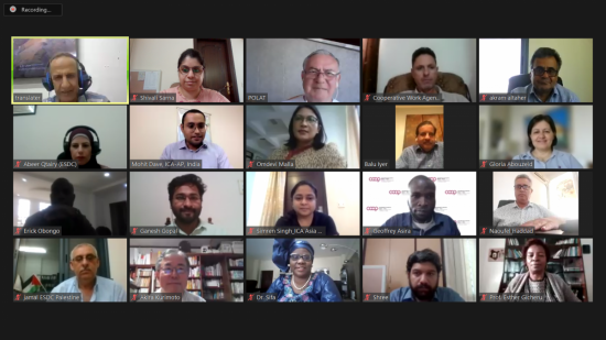 Mr. Balasubramanian Iyer, Regional Director, ICA-AP welcomed all participants and apprised them of the SCI consultation series and the importance of awareness campaigns to shed light on the contribution of cooperatives. Ms. Om Devi Malla, Member, ICA Global Board and the Congress Advisory Committee; Prof. Esther Gicheru, Member, ICA Gender Equality Committee and Chair, ICA Africa Research Committee; and Prof. Akira Kurimoto, Member, ICA Principles Committee and Chair, ICA-AP Research Committee joined to advise and guide the discussions. They emphasised the need for a better enabling environment to regulate the sector, setting standards for governance models, the incorporation process, legal obligations, voting rights, board composition and functions, and contributions to local communities. Mr. Akram Al Taher, Executive Director, Economic & Social Development Center, Palestine moderated the consultation.