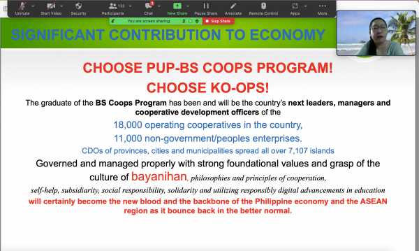 Dr. Hilda San Gabriel, Chairperson, Department of Cooperatives and Social Development, Polytechnic University of Philippines (PUP) made a presentation on its aim to deepen the understanding and appreciation of cooperative education and to promote the sector’s significant contributions to national development particularly in the areas of poverty alleviation, community building, social justice, and economic growth. PUP is a government educational institution; its Department of Cooperatives and Social Development offers a Bachelor of Science in Cooperatives (BSc Coop) Program, a four-year bachelor’s degree course aimed to produce cooperative technopreneurs and provide human resources and manpower to the cooperative sector. As the PUP positions itself to become a National Polytechnic University, the BSc Coop Program envisions producing globally competitive graduates who will be professionally competent, morally discerning, change agents, and social innovators for national development.