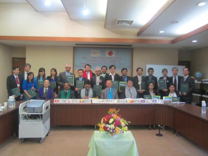At the concluding session at IDACA on 8th April 2016, Mr. Iwahana Masahito, Deputy Director of International Cooperation Division, MAFF, Mr. Balu Iyer, Regional Director, ICA-AP, Mr. Konno Masahiro, Executive Director, IDACA & Mr. A.K. Taneja, Project Coordinator, ICA -AP, addressed the participants. Mr. Sim Boramy, a participant from Cambodia, presented a vote of thanks on behalf of all the participants.