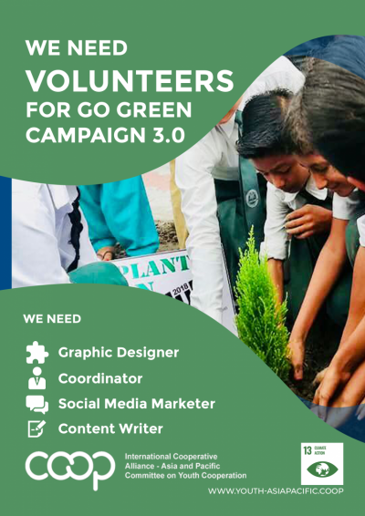 The Go Green Campaign, started in 2018, is an initiative of International Cooperative Alliance Asia-Pacific Committee on Youth Cooperation (ICYC), to link youth and SDGs on a single platform and create an identity for cooperatives as a sustainable model for environment and society. This year, ICYC will organise Go Green Campaign 3.0 in the month of July to fit with the 2020 theme for International Day of Cooperatives (July 4, 2020), Cooperatives for Climate Change.