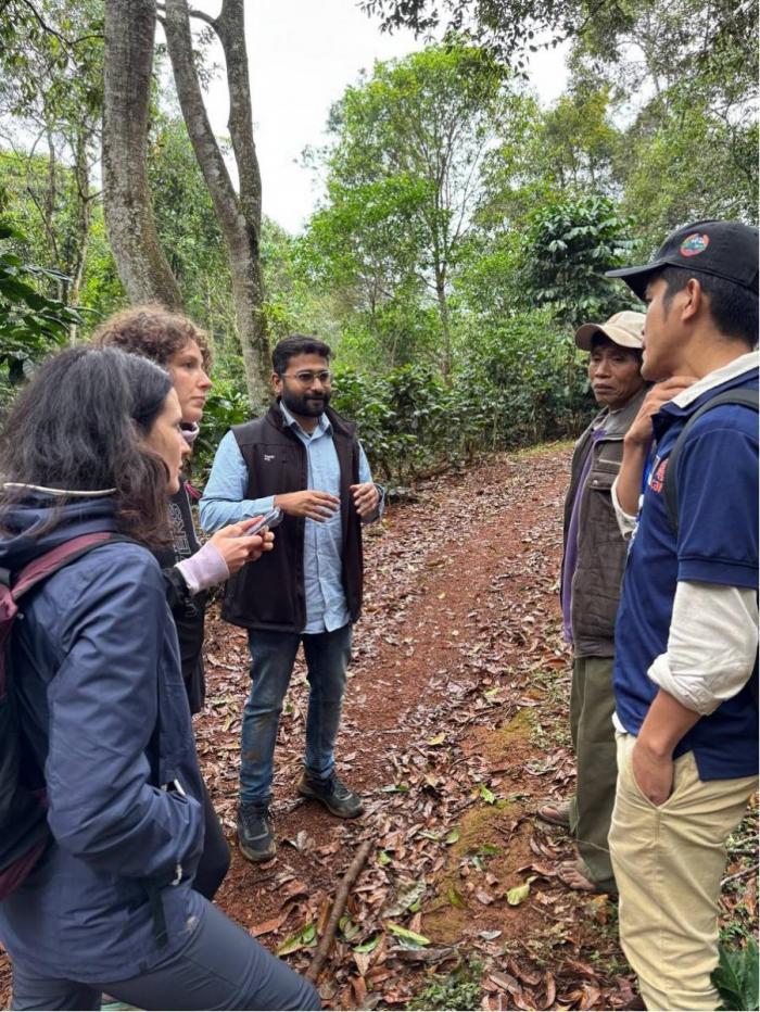 Thereafter, the delegation visited Paksong District Champasak province in southwestern Laos to observe the operations of ‘Jhai Cafe'. This initiative sources coffee directly from producer groups and local cooperatives while emphasising sustainable practices. A second visit to the ‘Cooperative for Sustainable Eco Coffee’, Paksong District showcased promising advancements in coffee production, including quality checks and participation both in national and ASEAN-level competitions for assessing coffee quality. Discussions with cooperative members explored capacity-building opportunities to enhance productivity and market access. The day concluded with travel to the hills of Dak Cheung for upcoming visits to the coffee-producing villages, where the team had interactions with cooperative members to delve deeper into their experiences and challenges.