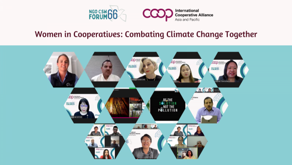 The International Cooperative Alliance Asia and Pacific (ICA-AP) Regional Office in collaboration with its Committee on Women and Committee on Forestry hosted a side event at the UN NGO CSW 66 Forum on March 24, 2022. The event organized for the first time by the Regional Office at NGO CSW had its theme, ‘Women in Cooperatives: Combating Change Together.’ Representatives from cooperatives of Japan, Nepal, Australia, Philippines, Malaysia, Palestine, Thailand, Sri Lanka, and India joined the event and discussed the impact of natural disasters on cooperatives and women members; and climate change initiatives taken by cooperatives. Mr. Balasubramanian Iyer, ICA-AP Regional Director and Ms. Sylvia O. Paraguya, CEO of NATCCO facilitated the program which was attended by about 85 cooperators from the region.