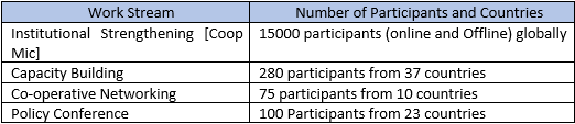 The AP unit recruited a Research Officer and a Communications Officer to complement the team which includes the Program Manager, Policy Officer and Finance Officer. The Unit organized the first if its kind live lecture series titled Coop Mic, inspired by Open Mics, to create a space for co-operative thought and action. Delivered by co-operative experts, CSO activists and friends of the co-operative movement, Coop Mic met with significant success and helped over 10,000 persons around the world with fresh content on important topics like co-operative principles, youth and SDGs, and crowd-funding projects. The video produced for the 1st Coop Mic can be found here. The Unit also started a series of Twitter chats with officials from co-operative apex organizations and international development agencies to create a space for open and frank discussions on topics like leadership, human resource development etc. In terms of institutional strengthening, the Partnership also creates the opportunity for training and capacity building of staff and members to help better the coordination and implementation of the program.