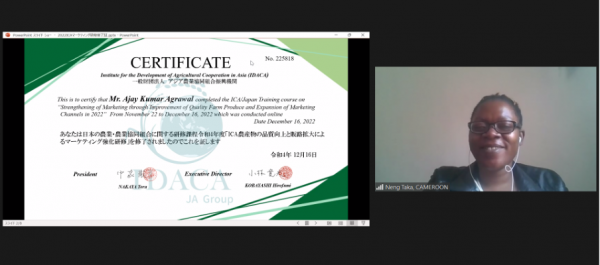 The ICA-Ministry of Agriculture, Forestry and Fisheries (MAFF), Government of Japan training course on “Strengthening of Marketing through Improvement of Quality of Farm Produce and Expansion of Marketing Channels-2022” was held from 22 November to 16 December. The 25 days training course was held in collaboration with the Institute for the Development of Agricultural Cooperation in Asia (IDACA-Japan). It aims to contribute to the development of agricultural cooperatives and the improvement of their members’ living standards by improving the agriproducts quality, access to markets of high value-added products and more involvement in food value chain through the strengthening of business economies in Asia and Africa, where initiatives for organizing agricultural cooperatives are making headway.