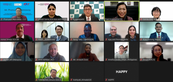 The Ministry of Agriculture, Forestry and Fisheries (MAFF), Government of Japan in partnership with the International Cooperative Alliance (ICA) is implementing the ‘Capacity Building Project for Farmer’s Organizations to support the development of Food Value Chain in Asia and Africa’ for three years starting 2020. The project comprises of three training courses for the strengthening of management, empowering of women and strengthening of marketing of cooperatives, and a follow-up guidance and survey of ex-participants.
