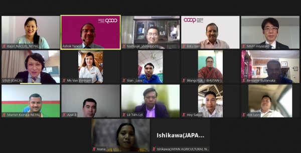 The Training course on "Strengthening Management and Development of Agricultural Cooperatives and Farmers’ Organizations in Asia and the Pacific-2021” was held online from February to March 2022. The course aims to foster leaders of farmers’ organizations including agricultural cooperatives, who are expected to play a central role in promoting the formation of agricultural cooperatives and the strengthening of organizational and business management, thus contributing to enhancing the competitiveness of agricultural products and income, leading to sustainable agricultural production.