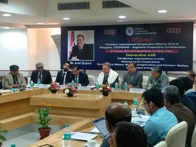 President Guarco was greeted by the elected board members of the Indian Farmers Fertilizer Cooperative (IFFCO) featured among the top-listed cooperatives in the World Cooperative Monitor 2018, on February 17 and was facilitated by ICA board member Mr. Aditya Yadav and hosted by IFFCO MD Dr. U.S. Awasthi. ICA President visited the ICA-AP office on February 18 and was received by the Regional Director Mr. Balasubramanian Iyer and the Asia Pacific staff, where he was joined by representatives from international organizations like the International Labour Organization Country Office (Mr. Satoshi Saski and Mr. Kelvin Sergeant, Decent Work Team), the European Union Delegation to India & Bhutan (Mr. Pattabiraman Subramanian) and ICA-AP Women Committee (Dr. Nandini Azad, Chairperson). The President was apprised of the status of ICA programming and membership in the region during the meeting where he briefly shared the vision for the ICA in the decade to come.