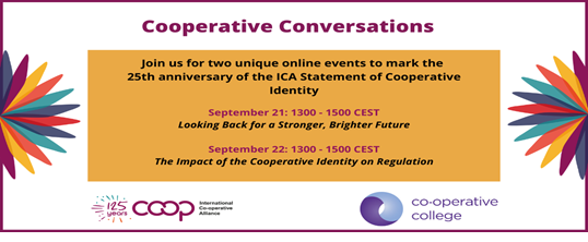 On September 21 and 22 2020, ICA in partnership with the Co-operative College UK held a discussion series, titled ‘Cooperative Conversations’ to celebrate the 25th anniversary of the ICA Statement on Cooperative Identity (ISCI). The Cooperative Conversations were held with the stalwarts of the global cooperative movement who have a rich background in academia, law, policy, and practice. Some of them have had a direct role in defining the statement on the cooperative identity, its cooperative and ethical values, and its seven cooperative principles. Young cooperative leaders from the Americas, Africa, and Europe were also invited to the discussion.