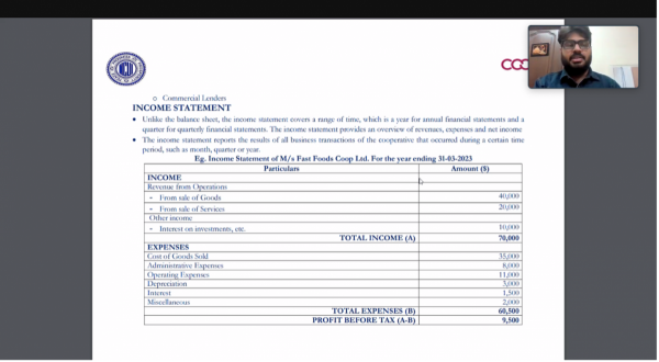 Mr. Dhang stressed the importance of loans and interest in cooperative finance, explaining how cooperatives can leverage these financial instruments to achieve their goals. He also spoke about the significance of maintaining accurate accounting records and financial reporting to ensure transparency and accountability.