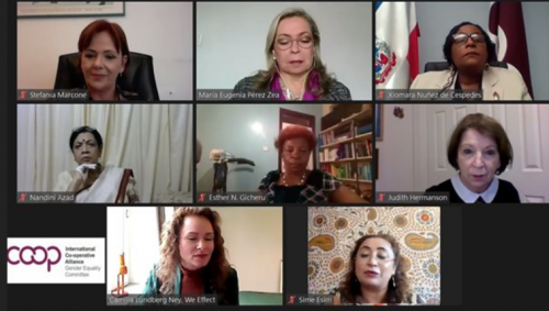 Through the webinar, women cooperative leaders from different parts of the world showcased various examples and best practices adopted by them to face the pandemic. The webinar was attended by over 180 participants from across the world. The first session, ‘Views and Updates by GEC Executive Committee members from the four ICA regions’, had Ms. Perez Zea; Ms. Esther N. Gicheru (GEC Executive Committee member and Chair of the Gender and Research Committee of ICA Africa); Ms. Xiomara Nunez de Cespedes (GEC Executive Committee member, Vice-Chair of the ICA GEC and Chair of the regional ICA GEC for the Americas); Dr. Nandini Azad (GEC Executive Committee member and Chair of the ICA Asia and Pacific Committee on Women); and Ms. Stefania Marcone (GEC Executive Committee member, Vice-President of Cooperatives Europe and Chair of Gender Equality Working Group at Cooperatives Europe) as the key speakers.