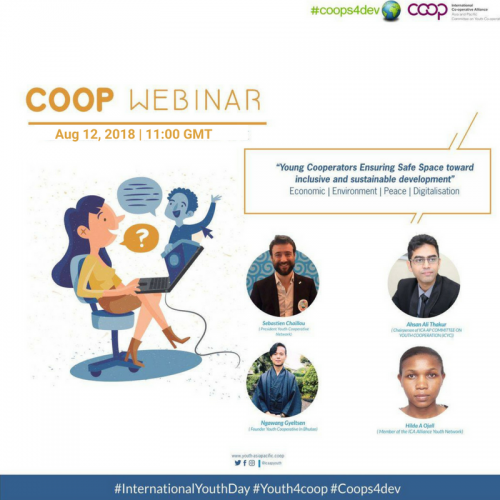 The ICA-AP Committee on Youth Cooperation (ICYC) organized a webinar to mark the UN International Day of Youth on Sunday, 12 August 2018. The Webinar was themed on the global theme of Safe Spaces toward Inclusive and Sustainable Development. The four invited guest speakers were Ngawang Gyeltshen, Founder – Youth Social Co-operative, Bhutan, Sebastien Chaillou, Global Youth Representative of the ICA, Hilda Ojal, Chairperson of the ICA Africa Youth Network and Ahsan Ali Thakur, Chairperson of the ICA-AP Committee on Youth Cooperation (ICYC). The meeting was moderated by ICYC Co-secretaries Santosh Kumar (ICA-AP) and Anis Sadah (Kopindo). The webinar saw the participation of 30 persons who joined online to gain knowledge on the IYD 2018, the role and recognition of co-operatives in Agenda 2030 on Sustainable Development and the Colombo Declaration on Youth (2014) on Mainstreaming Youth in the post 2015 Agenda, SDG11 on Sustainable Cities and Communities and the New Urban Agenda on which the IYD 2018 theme was based.