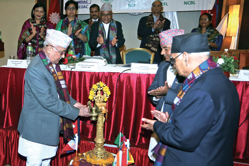 Prime Minister Mr. KP Sharma Oli lilghting the ceremonious lamp.