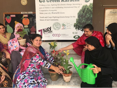 Teachers of C.P. BERAR High School for Girls, Karachi, Pakistan celebrating #coopsday by planting a tree and flowers in the cooperative school premises. Photograph credit: Mr. Ahsan Ali Thakur