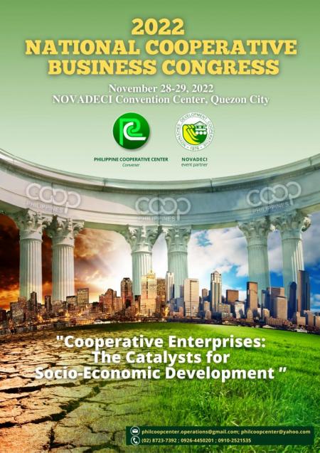 The Philippine Cooperative Center is organizing 2022 National Cooperative Business Congress (NCBC) with the theme ‘Cooperative Enterprise: The Catalyst for Change and Social Development’. This will be held on 28 and 29 November 2022 at NOVADECI Convention Center, Philippines.