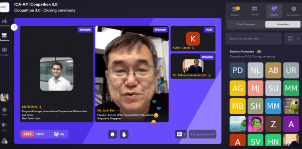 International Cooperative Alliance Asia and Pacific organised the third edition of Coopathon – a Cooperative Hackathon from 11th December (Friday) to 14th December (Monday), on a virtual platform, Airmeet. This is the first time a cooperative hackathon was organised as a fully online event and for an international audience. Coopathon 3.0 aimed to identify and solve contemporary problems and pressing challenges in the social and service sectors through an amalgamation of youth energy, technology integrations, and cooperative values & principles.