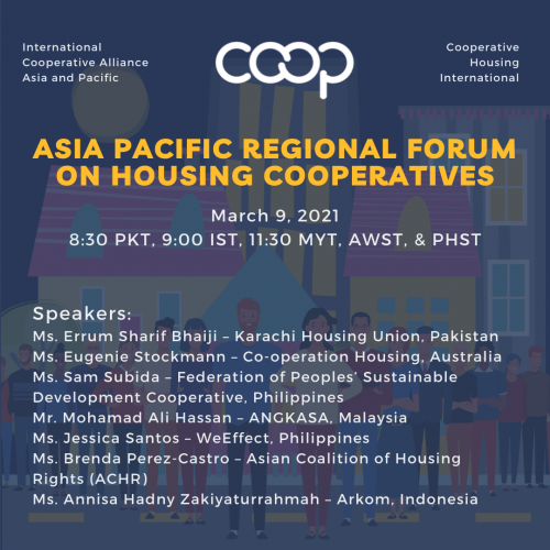 ICA-AP in collaboration with Cooperative Housing International (CHI) is organizing an online regional forum on Tuesday, March 9, 2021 with cooperative housing organisations in the Asia and Pacific region.
