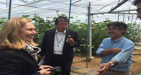 Monique with Takashi kanno and Ishibashi at Fukushima Farm