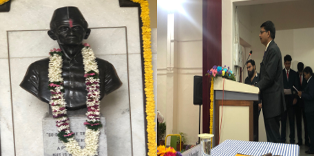 L to R Bust of Shri. Vaikunth Bhai Metha; Director Dr. K.K. Tripathy addressing the gathering
