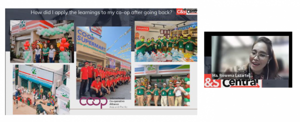 Ms. Ma. Rowena Lazarte, Brand Manager of C&S Central, Philippines was the trainee in the “Training Programs for Managers of Consumer Co-ops in Miyagi prefecture in Japan in 2019.” She mentioned learning a lot about the retail industry such as consumer behaviour, emerging technology, customer service (how to deal with complaints and meet customer expectations), and team management (collaborative team effort and feedback system between management, employees and customers). She noted that she was inspired during the workshop and was motivated to increase the number of C&S stores in the Philippines. As a result, despite the pandemic and with limited resources, the number of modern generation stores of C&S increased from 1 to 5 and another one would also open at the end of March 2023. Relationship between coop members and coop staff was also learnt in Japan and she upgraded the C&S service to be more member oriented. Her expectations of JCCU and ICA-AP are to open an investment/ partnership with them, to be supportive, to provide education about new generation stores and to increase the opportunities of exchanging coop products among coops in other countries.