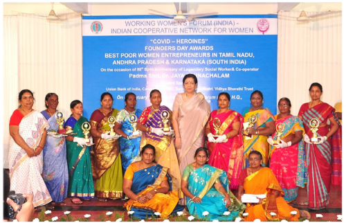 The Working Women’s Forum (WWF) and Indian Cooperative Network for Women (ICNW) Chennai, bestowed the, ‘Best-poor women entrepreneur’ awards to nine women micro-entrepreneurs on February 8, 2021. The award ceremony was held on the 89th birth anniversary of the legendary Indian cooperator and social worker Late Dr. Jaya Arunachalam.