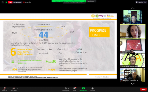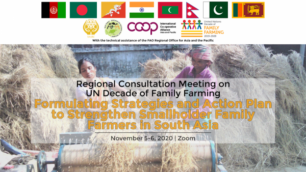 ICA Asia-Pacific (ICA-AP), in collaboration with the SAARC Agriculture Centre (SAC), Asian Farmers Association for Sustainable Rural Development (AFA), the Food and Agriculture Organization – Regional Office for the Asia Pacific (FAO-ROAP), and with the support of the ICA-EU Partnership[1] organised an online “Regional Consultation meeting on the UN Decade of Family Farming (UNDFF): Formulating Strategies and Action Plan to Strengthen Smallholder Family Farmers in South Asia”. The meeting was useful in providing direction to formulate a Regional Action Plan that defines the key priorities, strategies, and actions to implement the UNDFF in South Asia. The meeting was held on 5th and 6th November 2020 and was attended by around 150 participants from the government, family farmers organizations, cooperatives, academia, civil society, research institutions, and intergovernmental organisations from South Asia.